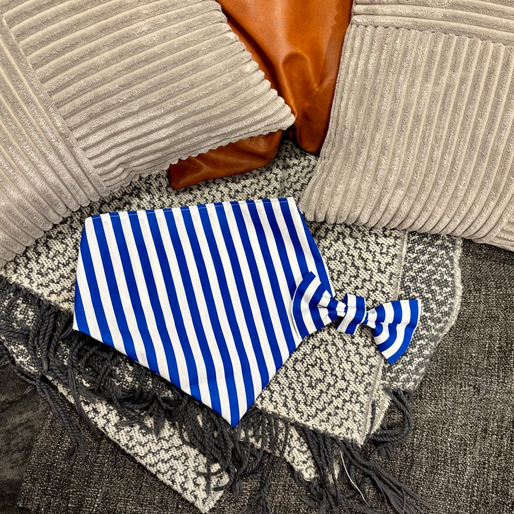 It’s time for a slumber pawty! The pillows are fluffed and your pup is ready to put on their paw-jamas! Get them ready for a cozy night in with these blue striped pajamas inspired bandanas and bow ties!